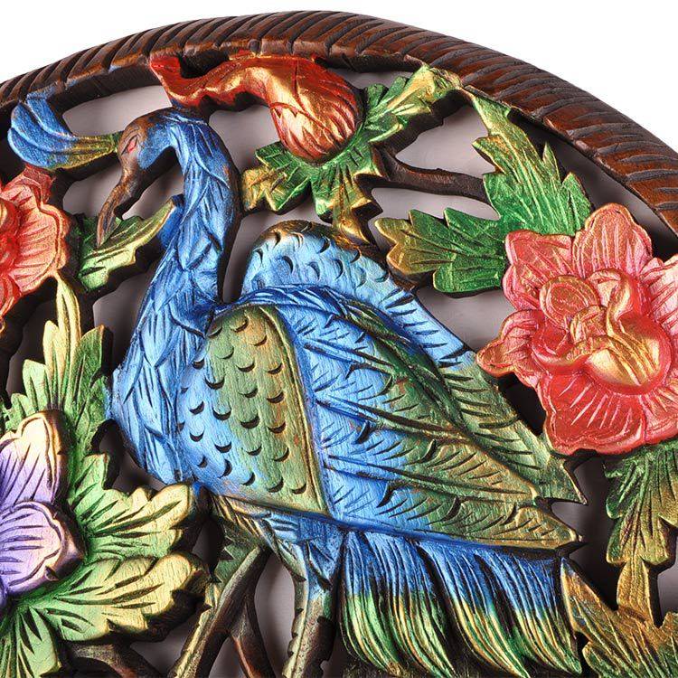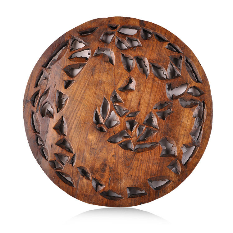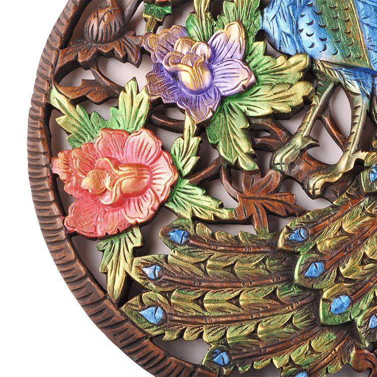 Thailand imported crafts solid wood carving round peacock carving board living room wall decoration porch partition hanging board
