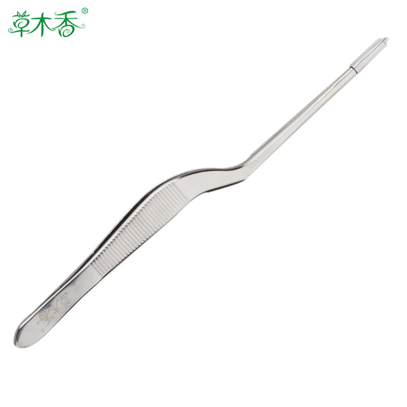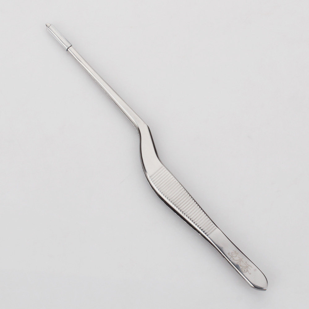 High-quality curved handle toothed ear tweezers for ear picking Elbow with serrated safety ear tweezers Gun-shaped tweezers ear picking tool