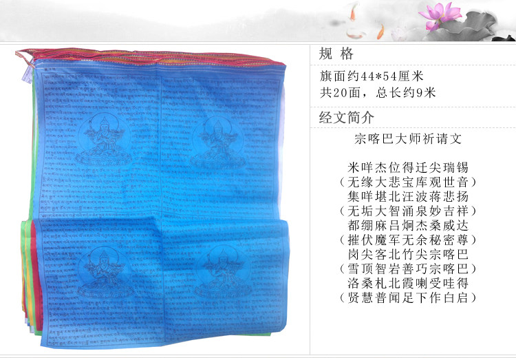 Master Tsongkhapa's prayers, prayers, scriptures, Tibetan esoteric Buddhism, Tibetan five-color wind and horse flags, and the flags