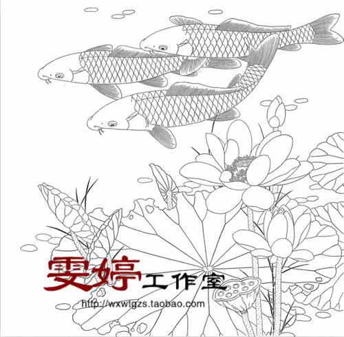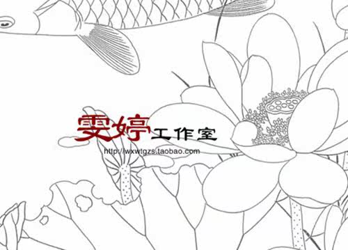 Fine brushwork line drawing sketches - lotus carp drawing flower and bird painting professional fine brushwork sketches