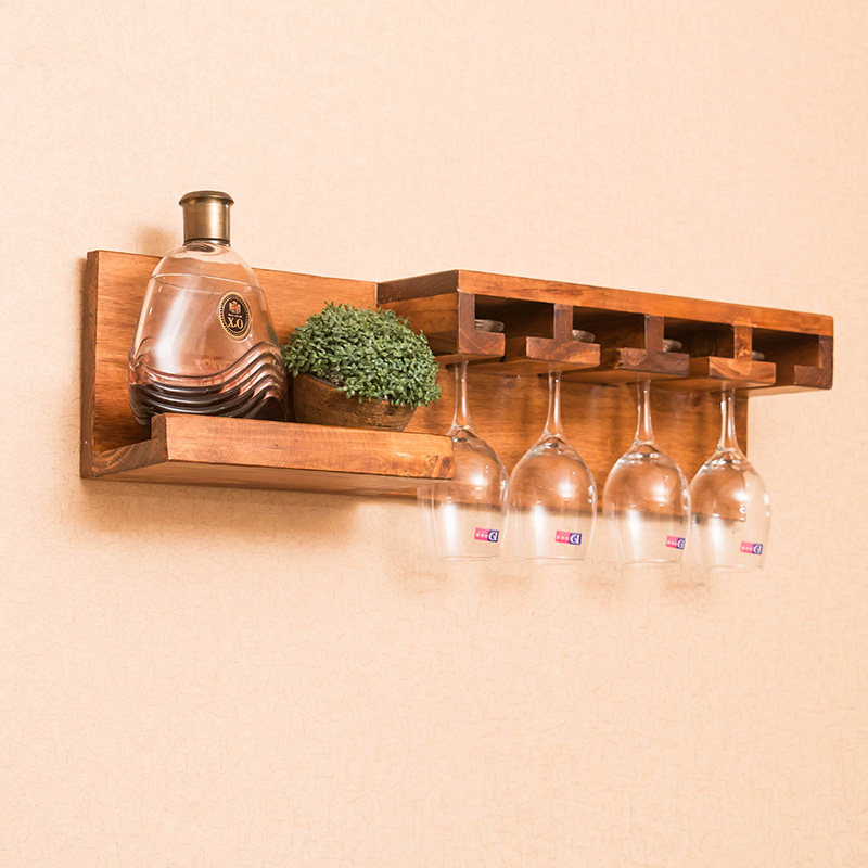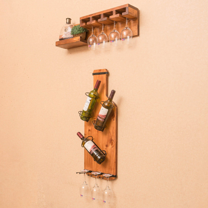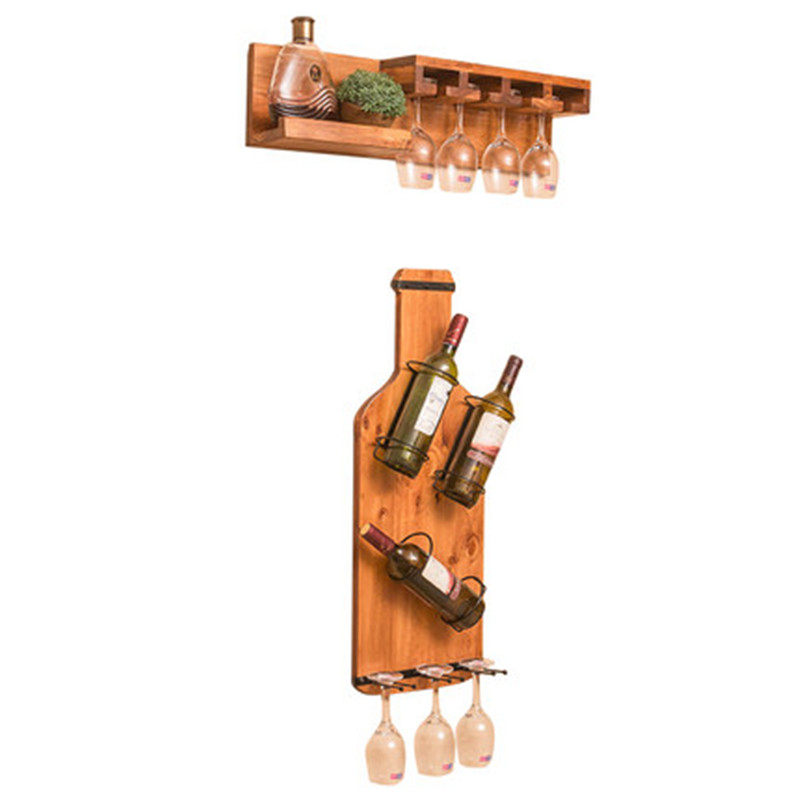 Solid wood hanging red wine rack rack European wall hanging dining room living room bar simple creative retro wine glass rack