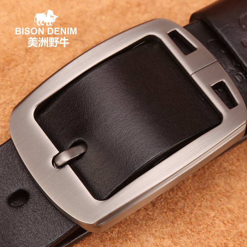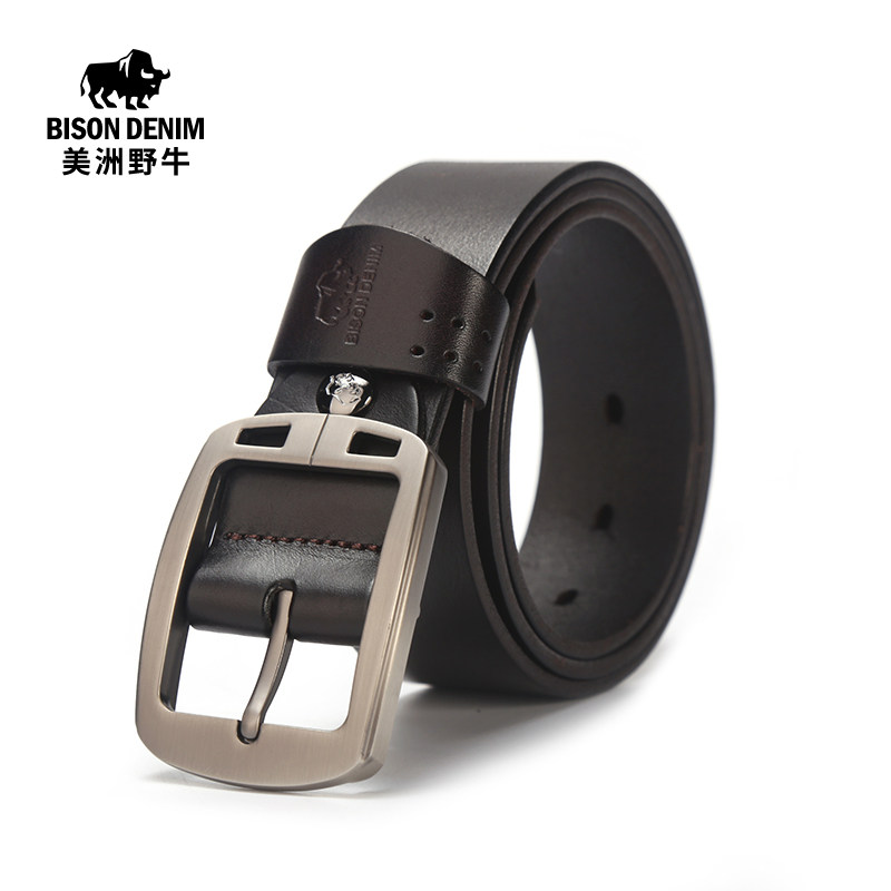 Americas Bison Genuine Leather Tide Men's Leather Strap Han Edition Youth 100 Hitch Retro Calf Leather Needle Buckle Wide Girdle Jeans Strap