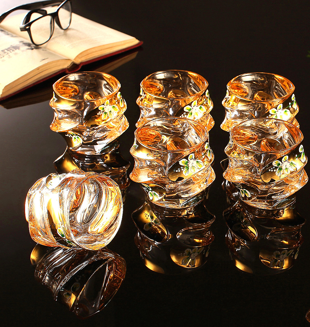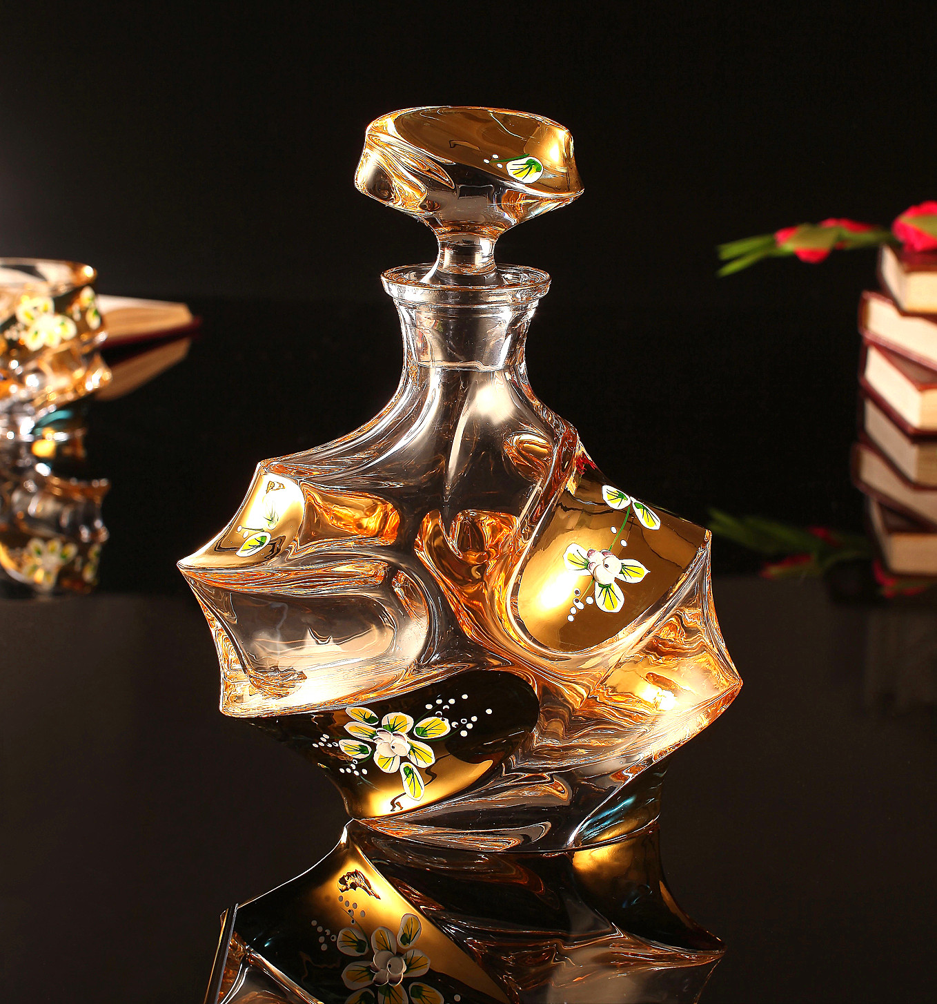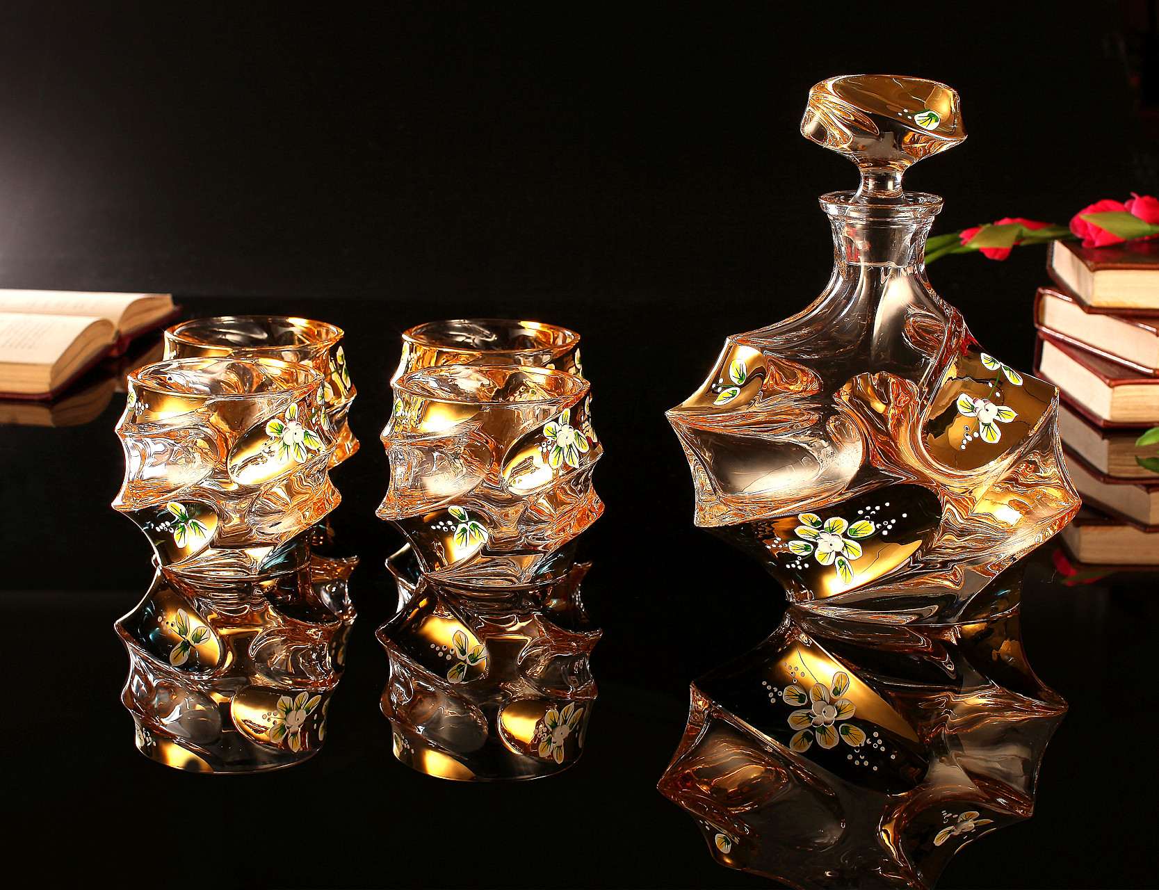 Czech imports Inlaid Gold Crystal Wine Set with Whisky Wine Bottle Foreign Wine Glass Kit Glass Wine Decanter Decanter