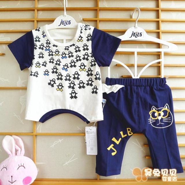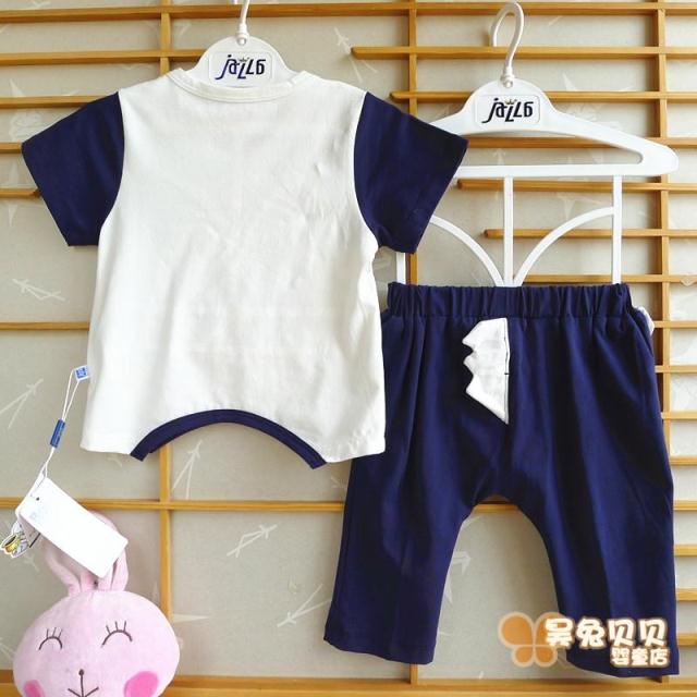 Special offer Jiale Rabbi summer baby boys short-sleeved tops and pants head and shoulders open two-piece cotton 73