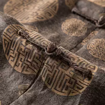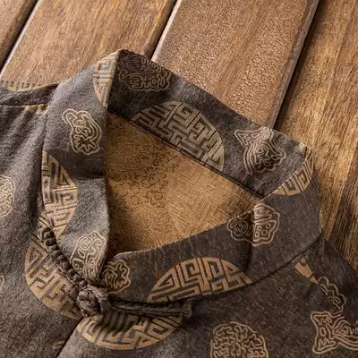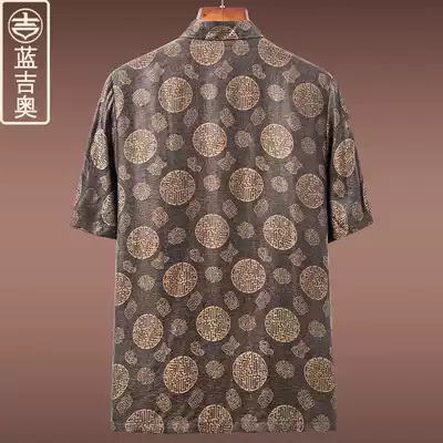 Middle-aged and elderly Tang suit men's summer short-sleeved silk Mulberry silk satin fragrant cloud yarn suit men's Chinese style shirt