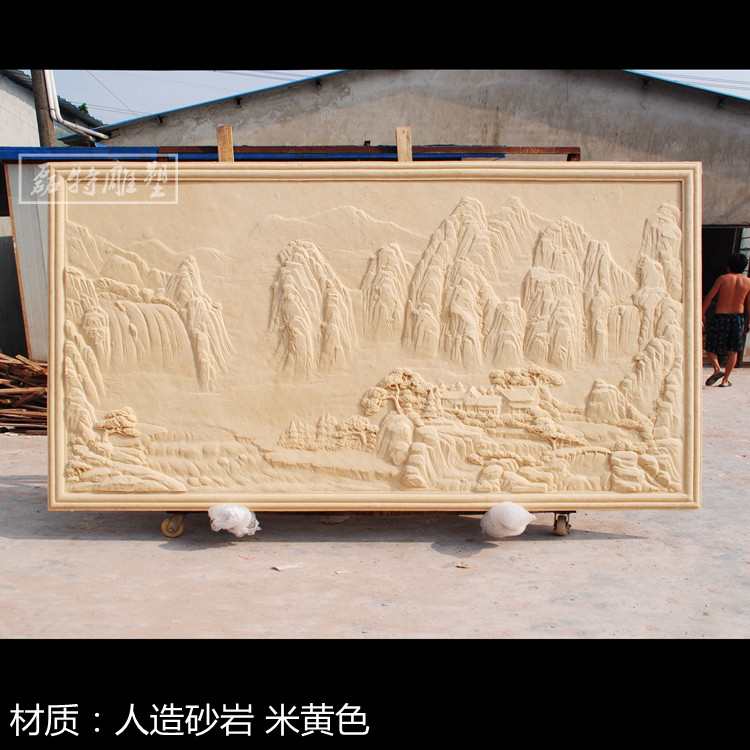 Sandstone landscape relief mural villa courtyard community park wall hotel lobby front desk background wall decoration
