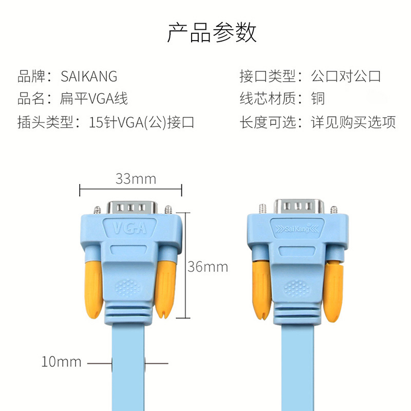 saikang flat vga cable vga connection extension cord computer monitor movable nut 0 3 0 5 m