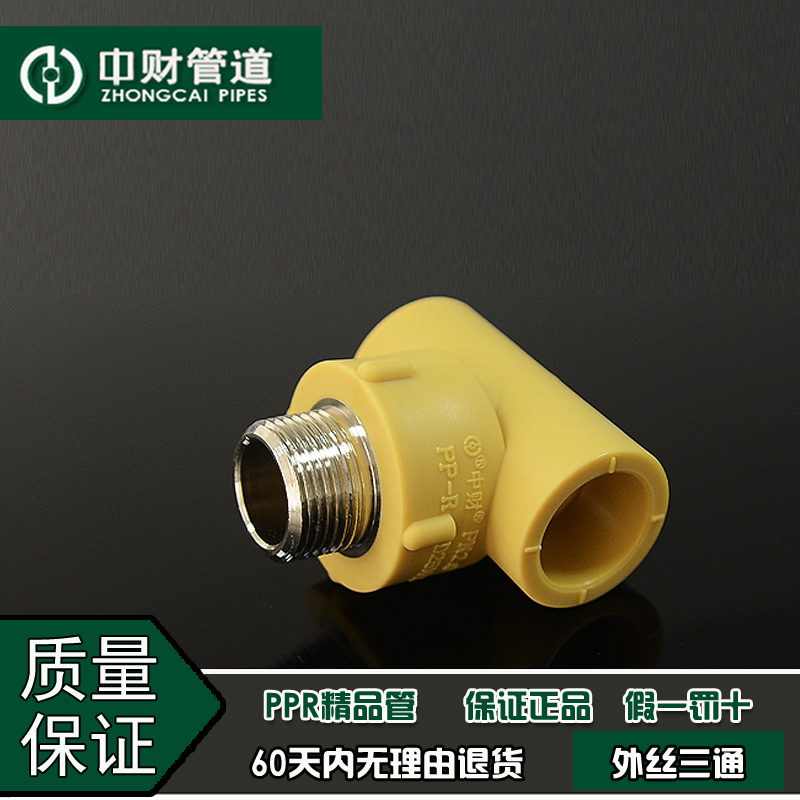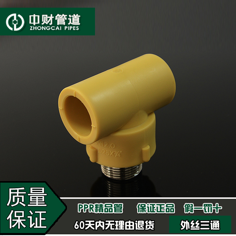 Zhongcai pipe PPR hot and cold water pipe fittings 20 25 32 4 minutes 6 minutes 1 inch outer wire tee External tooth tee