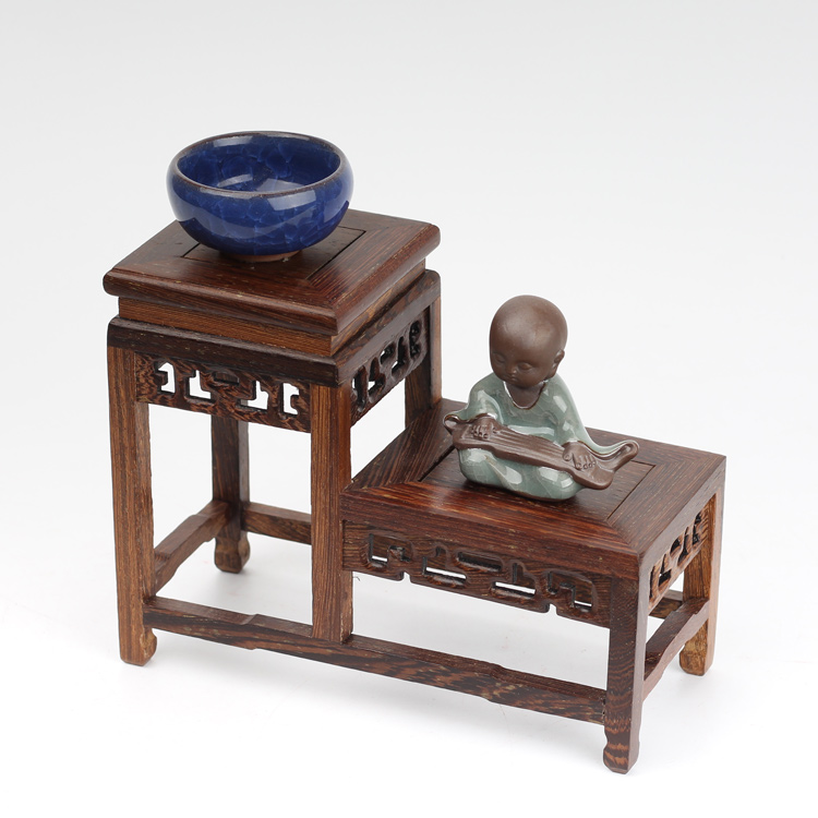 Wenge wood high and low two Bogu frame teapot vase antique small ornaments bonsai base mahogany carving Bogu frame
