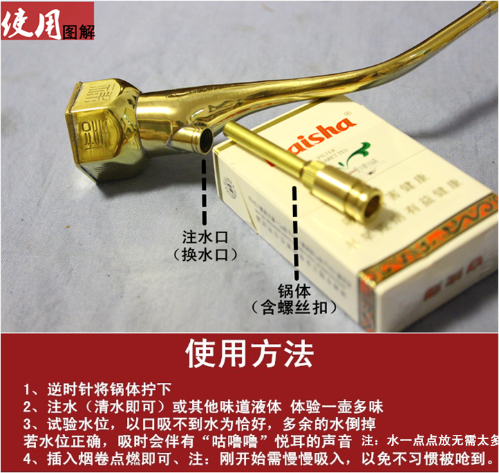 Gold Tai China old-fashioned brass water smoke bucket water smoke pot cigarette bag retro personality smoke with smoke filter-Taobao