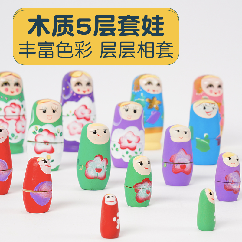 Russian five-story matryoshka kindergarten sensory integration training equipment girl desktop toy children's female doll wooden set