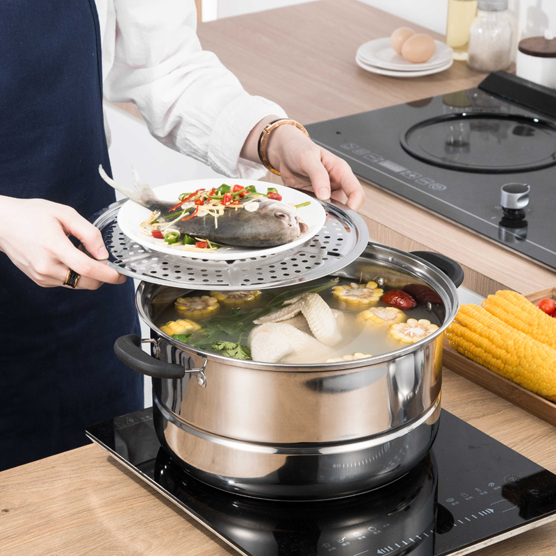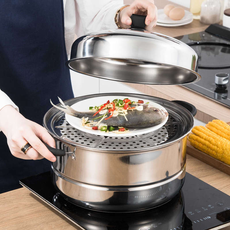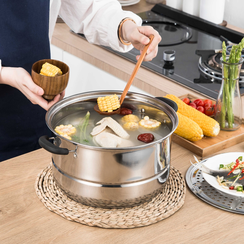 Thick stainless steel steamer double layer household soup pot stew pot hot pot steamed steamer induction cooker gas pot 28cm