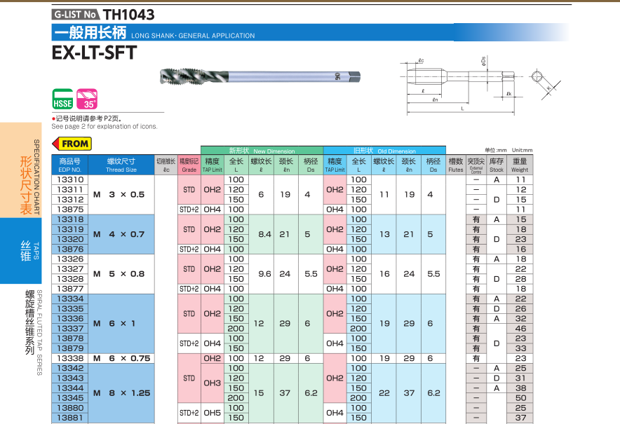 Imported Japanese OSG long - handle length spiral screw attack EX - LT - SFT