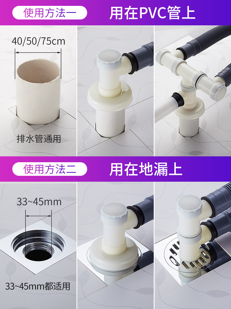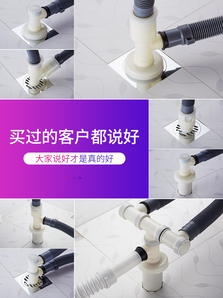 Washing machine drain pipe floor drain joint special three-way cover anti-overflow outlet cover sewer three-end odorant
