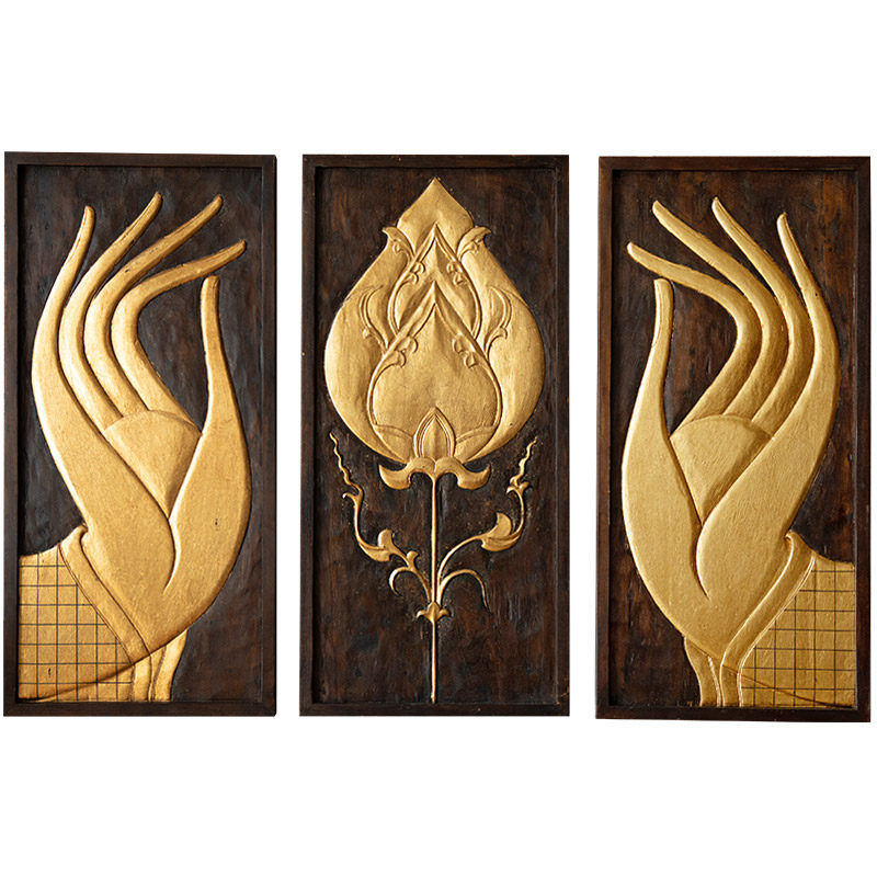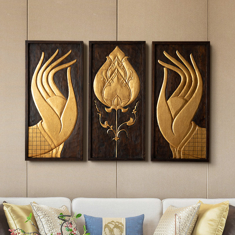 Thailand wood carving wall hanging hotel beauty salon wall decoration pendant Southeast Asian wall decoration wall decoration bergamot lotus