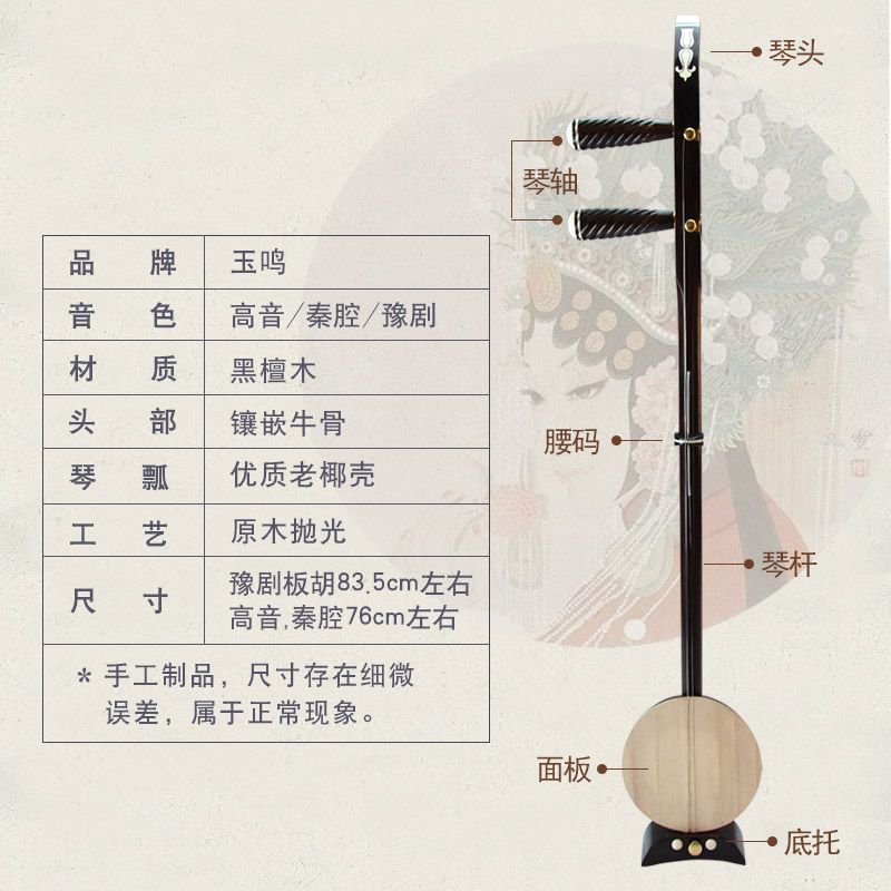 Yuming ebony board Hu Pingtou dragon head high baritone Yu opera performance special Qin cavity manufacturers direct sales instruments
