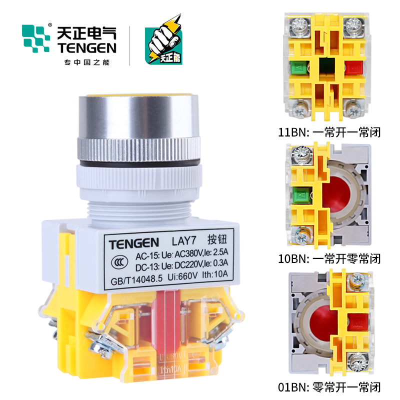 TIANZHENG electric push button switch LAY7-11BN flat head Y090 self-reset 11BNZS self-locking start stop red