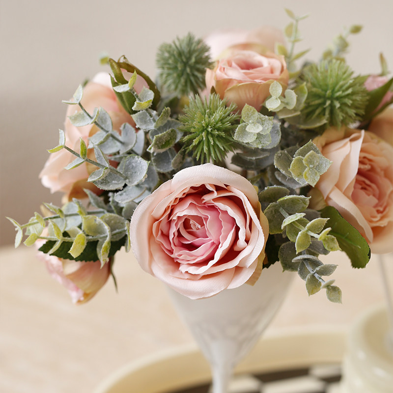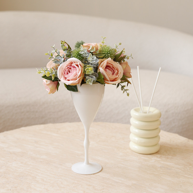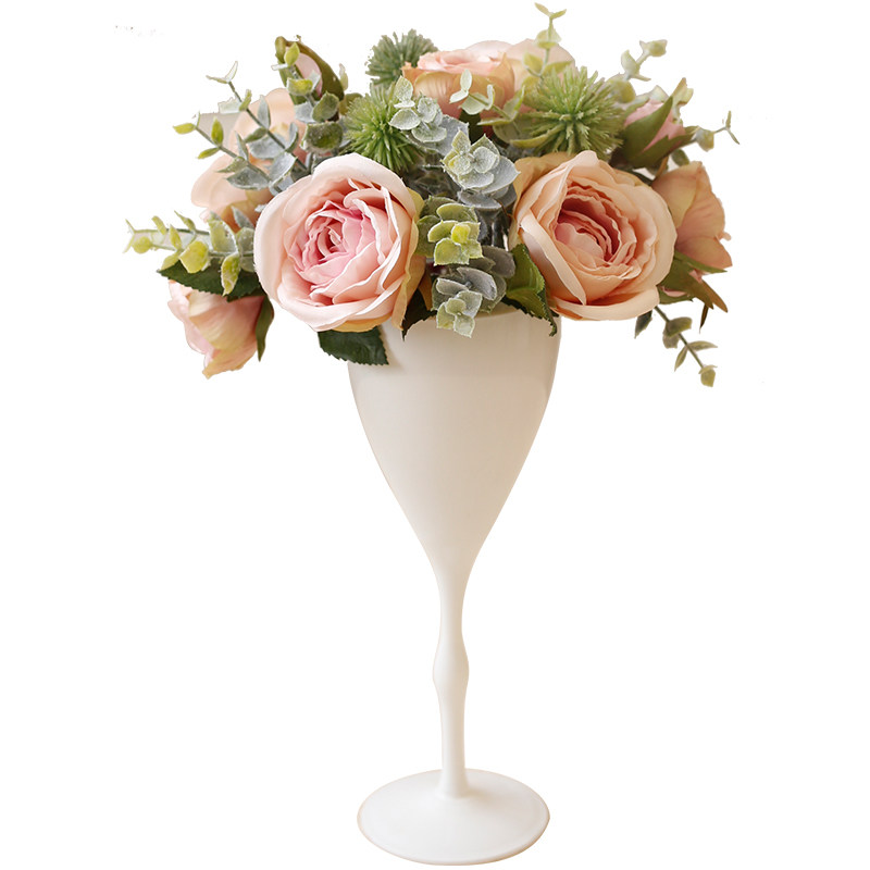 Ladylike European and American style high footed cup simulation flower fake flower rose decoration flower shooting with props table floral swing piece-Taobao