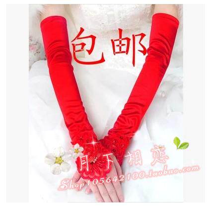 Bride Gloves Wedding Wedding Dress Gown Gloves Lengthened Gloves without finger Embroidered Gloves Red white
