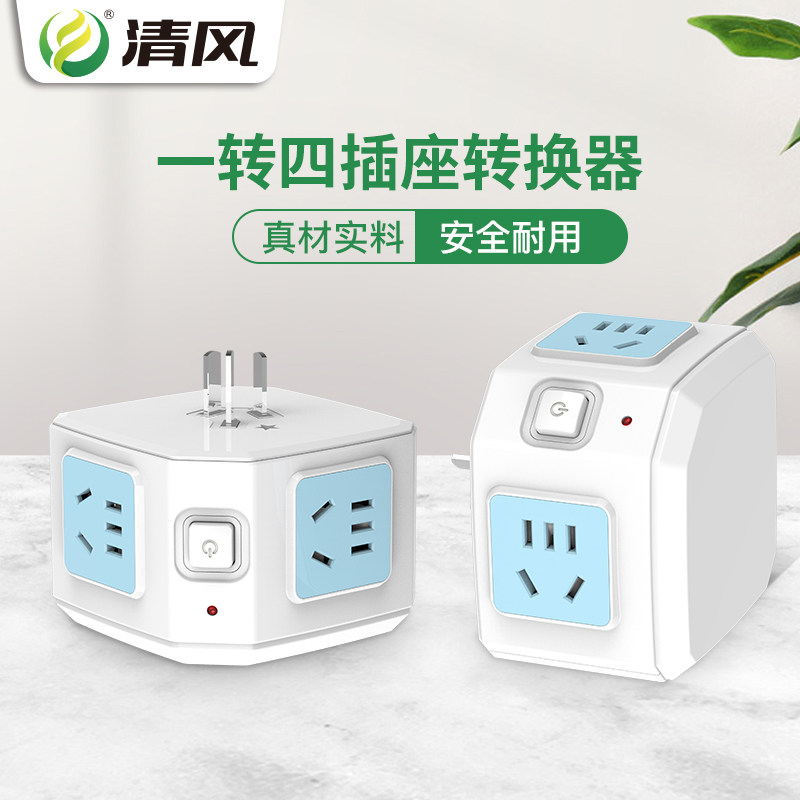 Qingfeng Rubik's Cube socket converter plug wireless vertical wiring board household one turn four multi-function row extension cord