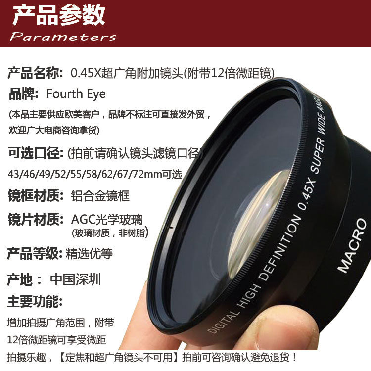 67mm 0 45x wide-angle additional lens Wide-angle lens with macro for Canon 18-135 lenses