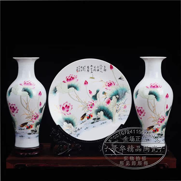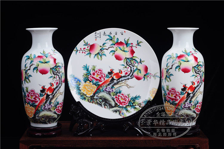 Jingdezhen Ceramic vase Living room Three sets of swinging pieces table face decorated with white porcelain tray bookshelf Xuanguan
