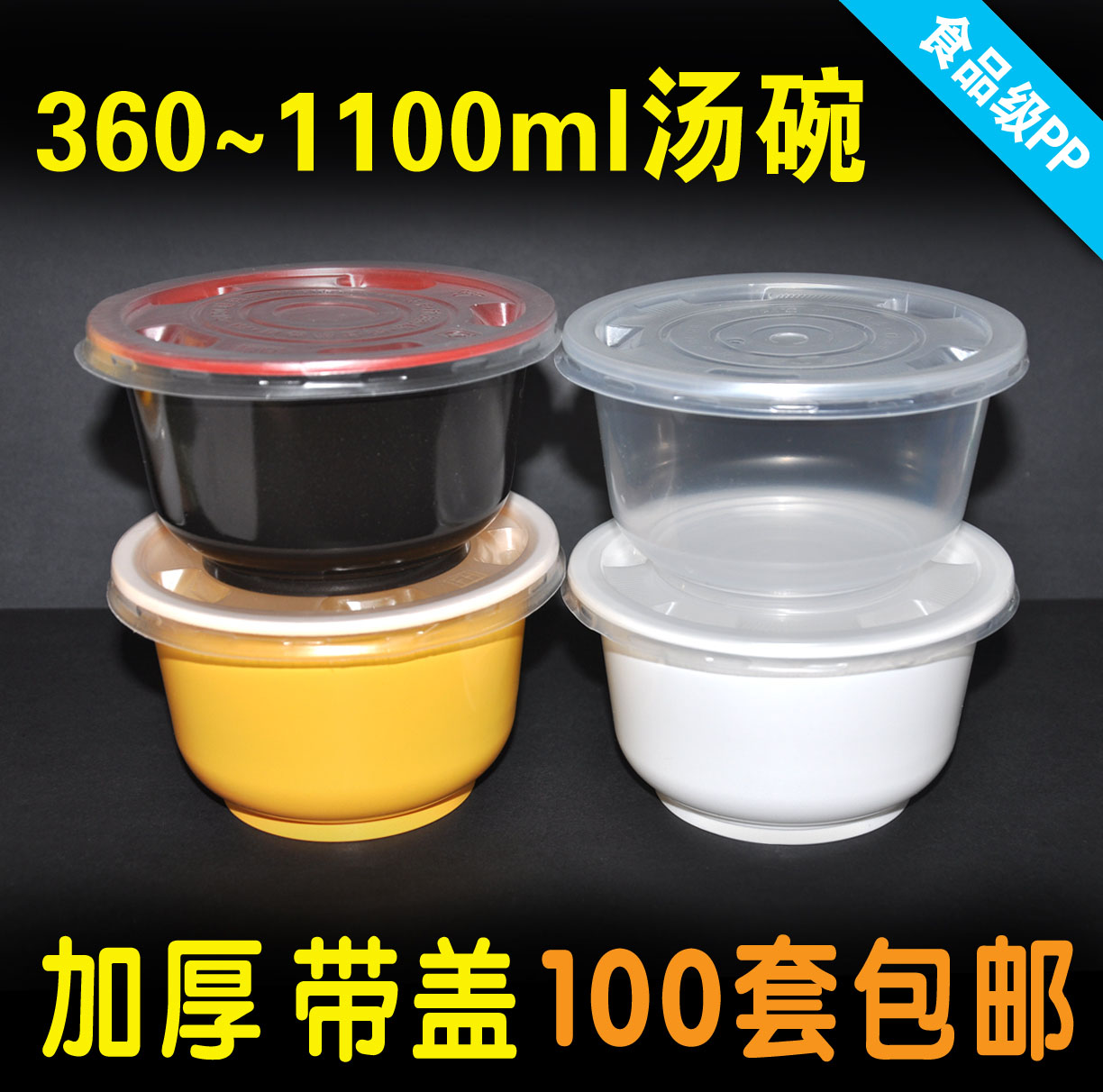 Disposable Plastic Soup Bowl Takeaway Packing Bowl Fast Food Round Bowl Plastic Porridge Bowl Rice Bowl with lid 100 cover