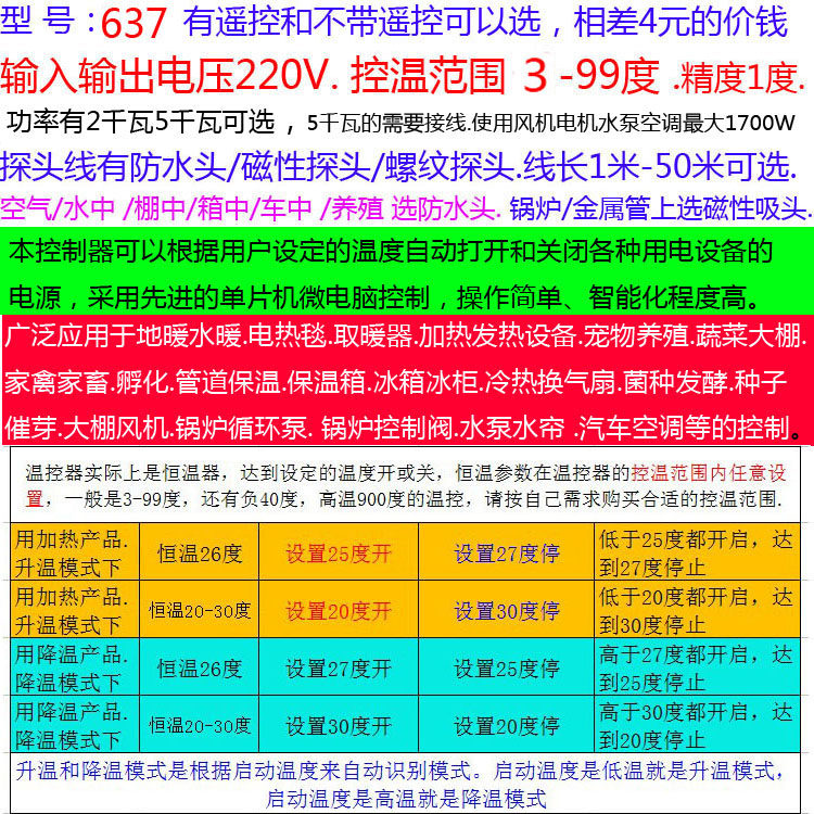 Automatic thermostat controller high power remote control 637 fan temperature controller temperature controller switch breeding pump 5000W