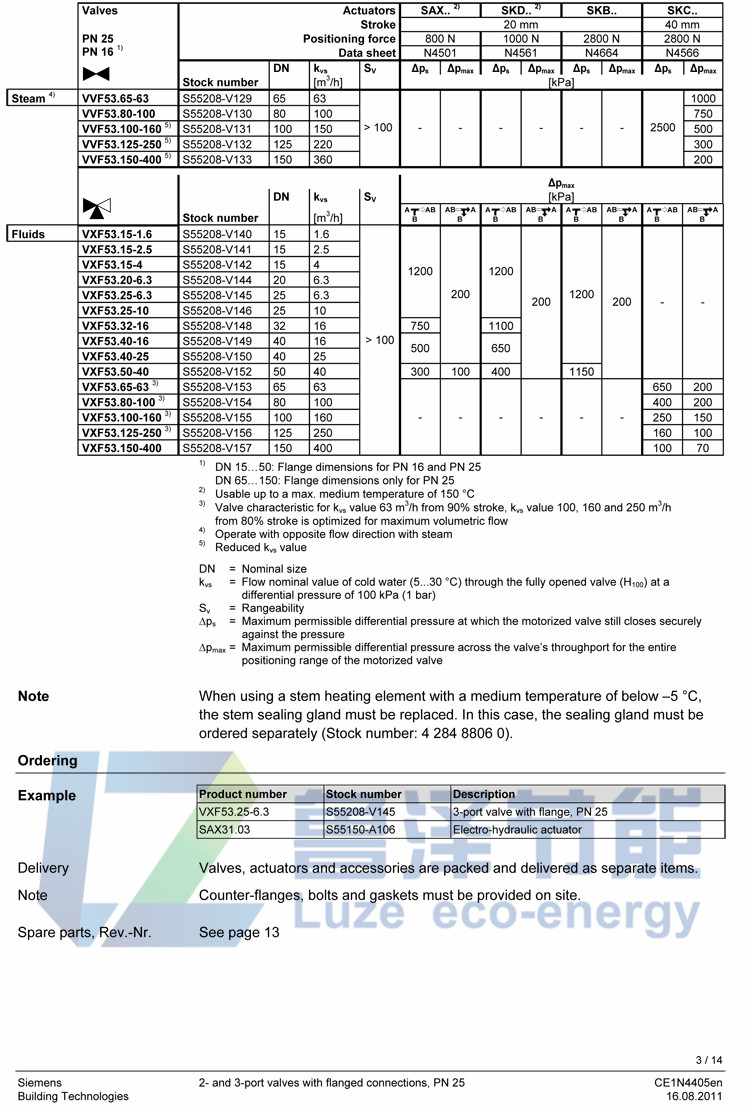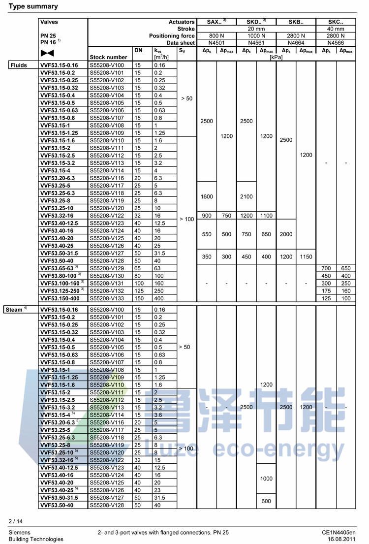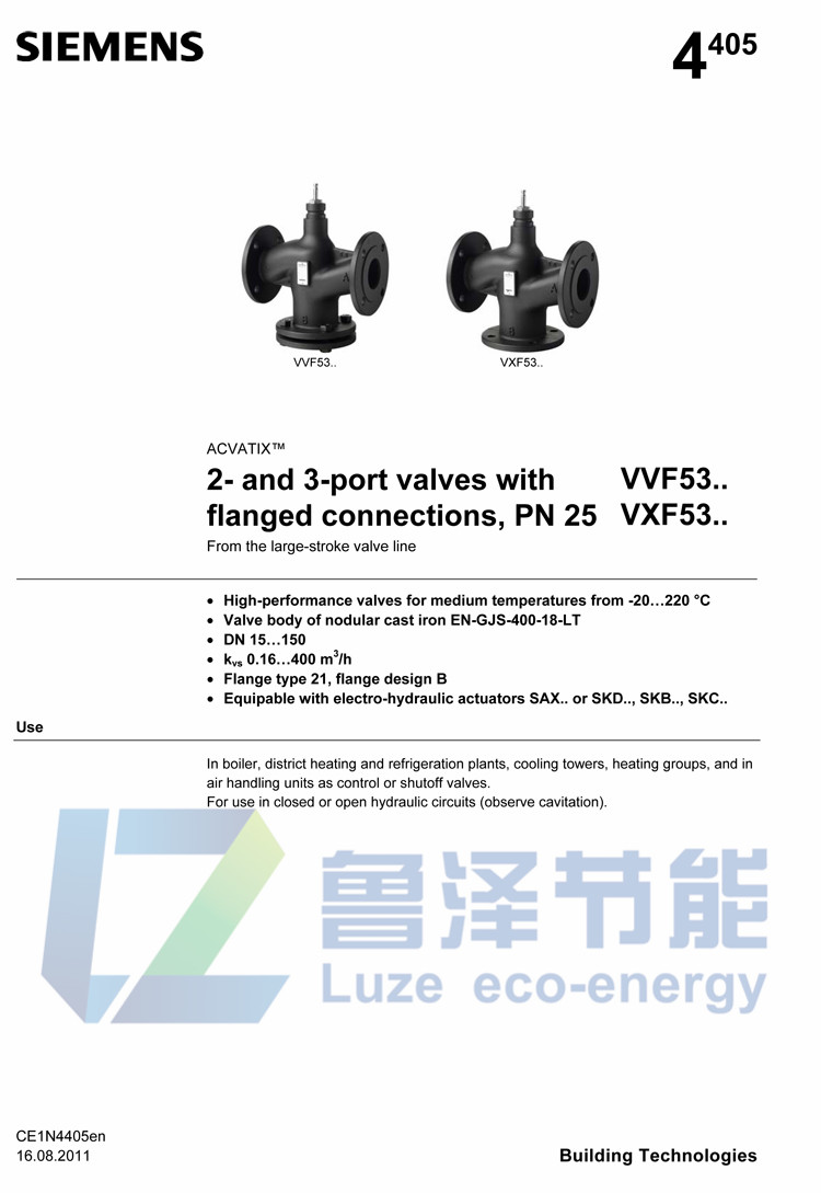 Siemens VVF53.15-2 flange electric two-way regulating valve inlet steam temperature control valve DN15