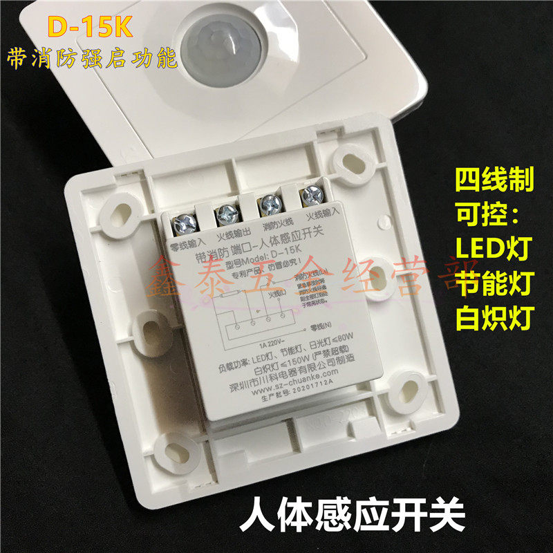 Sichuan Section 86 Type of dark fit D-15K Four-wire human body infrared induction with fire function building Road intelligent control LED lamp