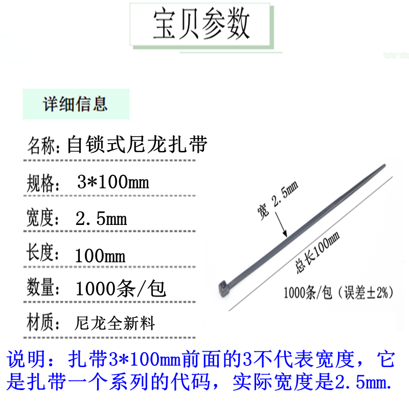Self-locking nylon cable tie 3*100mm National standard plastic management line fixed bundle buckle small bundle line a pull