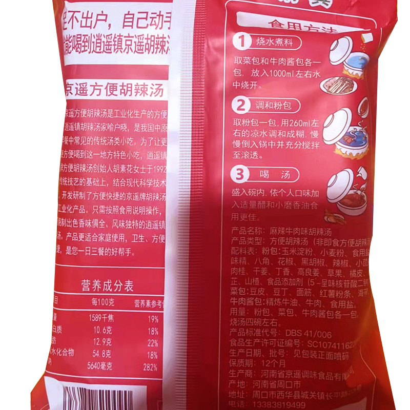 Authentic Henan specialty Jingyao Hu Spicy Soup Soup Spicy Beef Breakfast Convenient Fast Food Soup Vegetarian Hu Spicy Soup