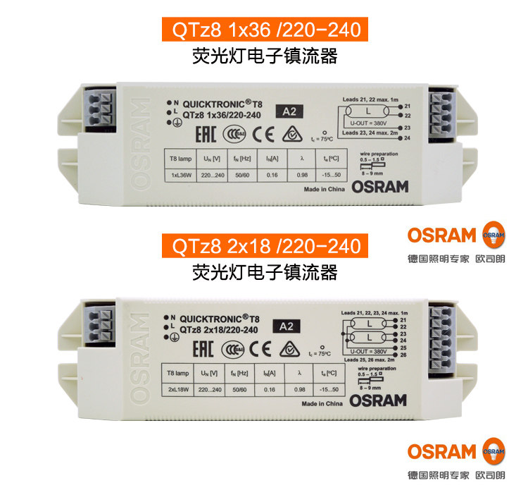 OSRAM QTZ8 18W 36W T8 fluorescent lamp electronic ballast one drag one drag two one drag three