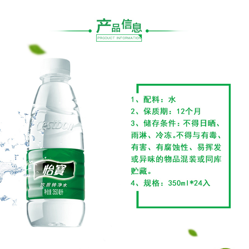 Yibao pure water 350ml*24 bottles full box of small bottled drinking water Mineral water support enterprise customization
