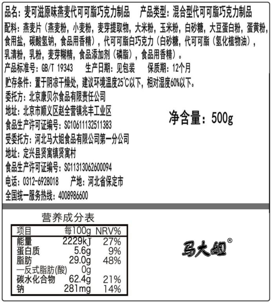 Ma Dajie Michael 500g oat chocolate wedding candy cereal candy office snack food