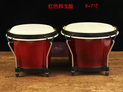 Natural bongo drum Red bongo drum single stainless steel bracket A bongo drum with bracket set
