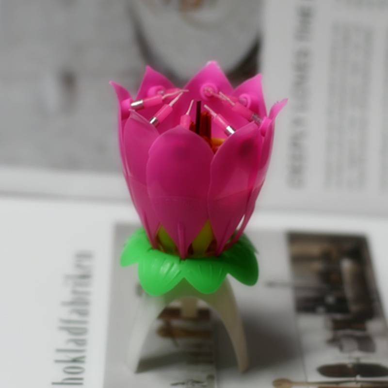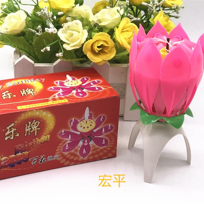 Net Red birthday cake Candle Lotus lamp Lotus type party music Flowering rotating happy song Creative romance
