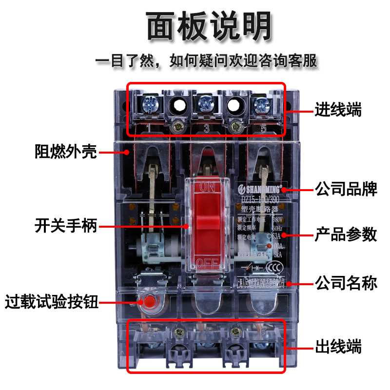 Shanghai People's Air Switch Home DZ15 Air Switch Breaker Three-phase Electric Switch Transparent Shell Diphase Electric-Taobao
