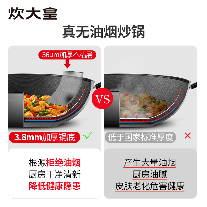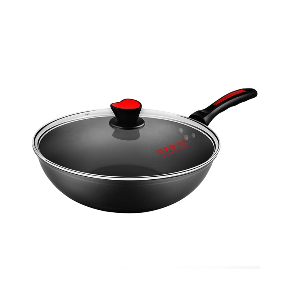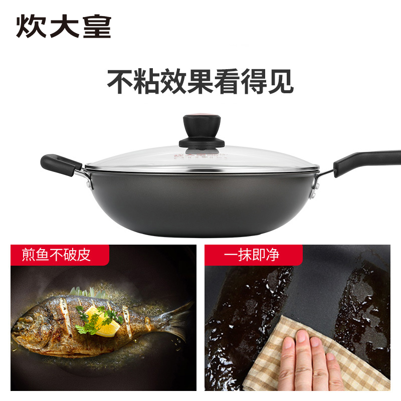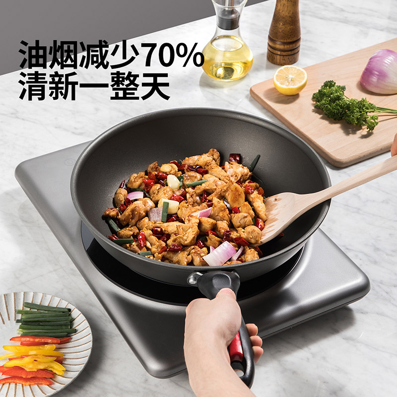 Cook king wok 32cm non-stick wok No fume flat wok Open flame induction cooker Universal household smoke-free pot