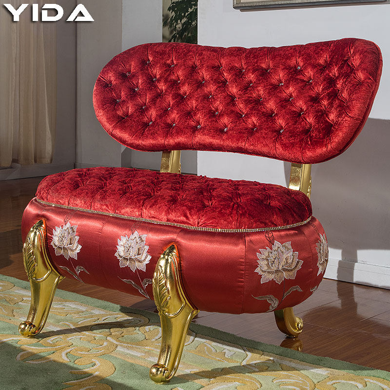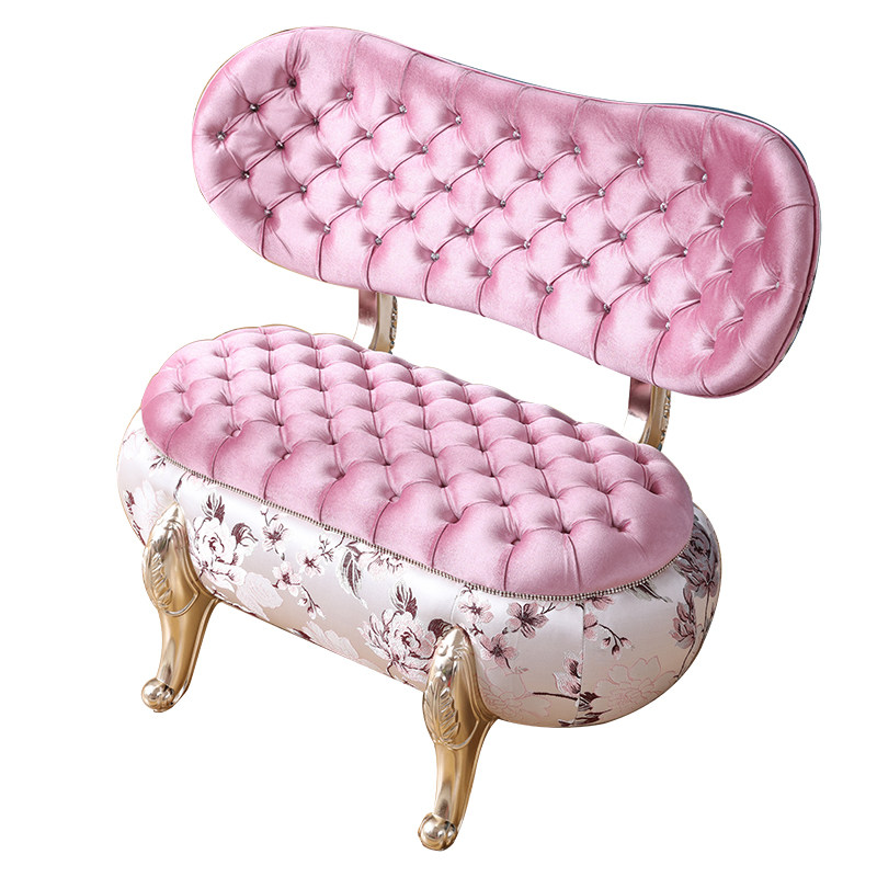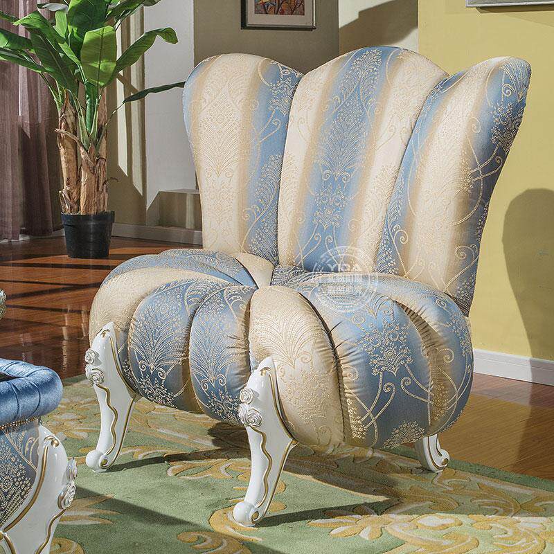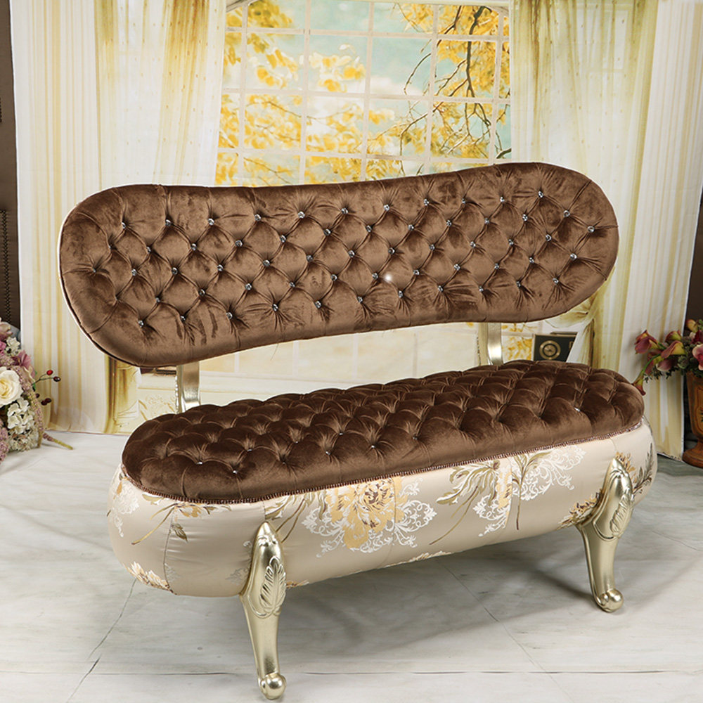 European-style sofa solid wood fabric small sofa living room combination double high back chair pumpkin stool changing shoe stool spot