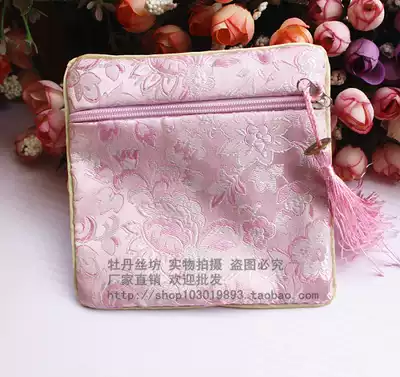 Suzhou Featured Gift Vintage Print Square Tassel Copper Wallet Silk Coin Wallet Zipper Bag Coin Card Bag