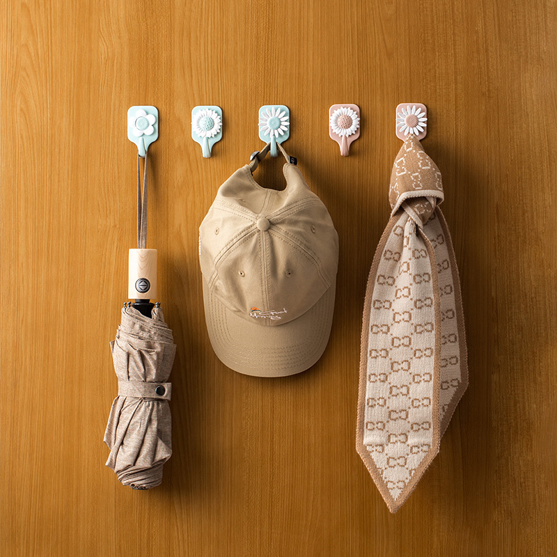 Camellia plastic hook wall hanging hook Clothes clothes bathroom kitchen creative household hook Adhesive strong load-bearing