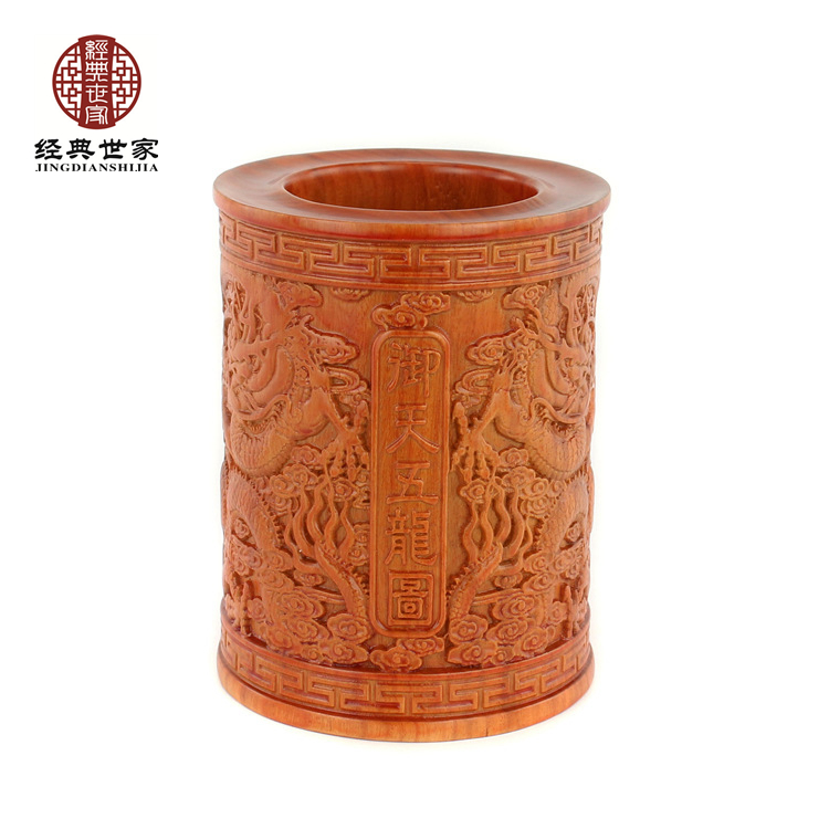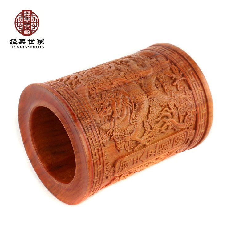 Imitation ancient Chinese handicraft pendulum decoration solid wood engraving red and sour branches Pear Wood Black Sandalwood Office Red Wood Pen Holder