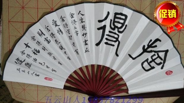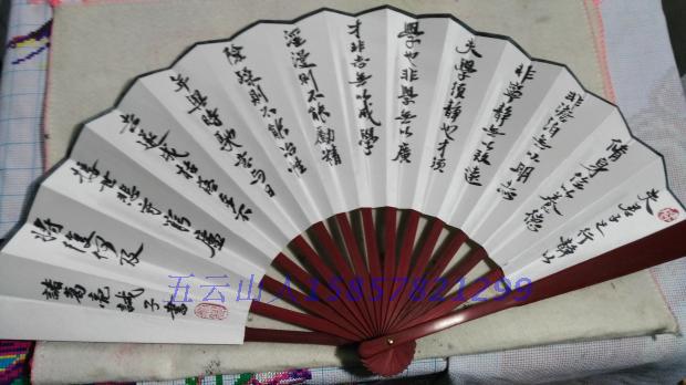 Handwritten inscription white paper folding fan Wuyun Mountain people personally wrote Chinese calligraphy imitation mahogany bamboo festival can be inscribed on both sides