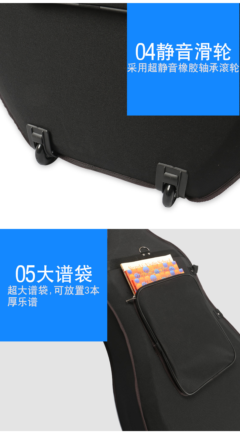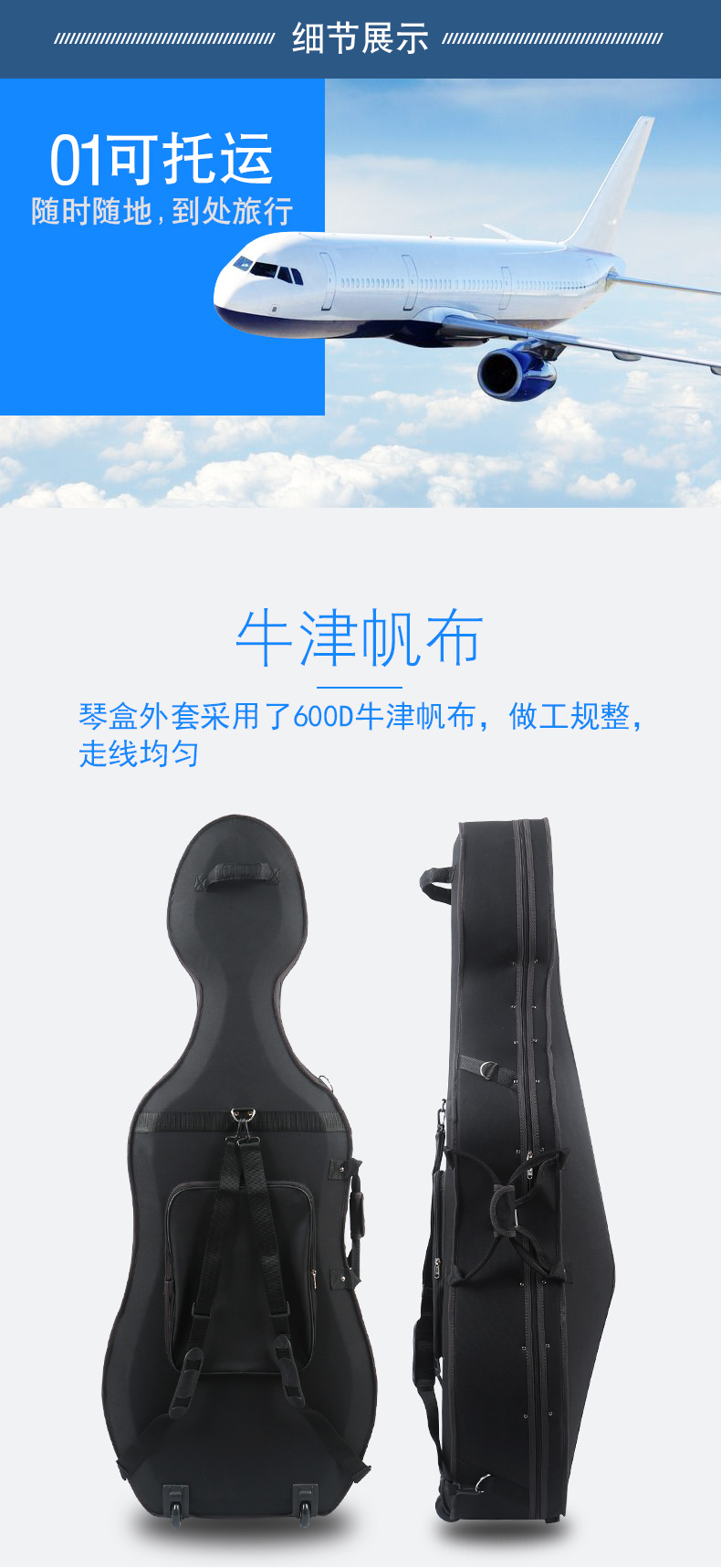 Van A ling hot sale cello case foam liner ultra lightweight double shoulder anti-compression roller air consignment bag