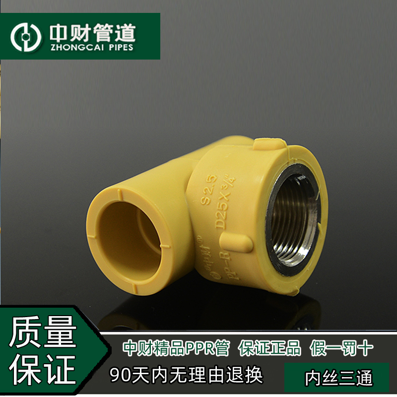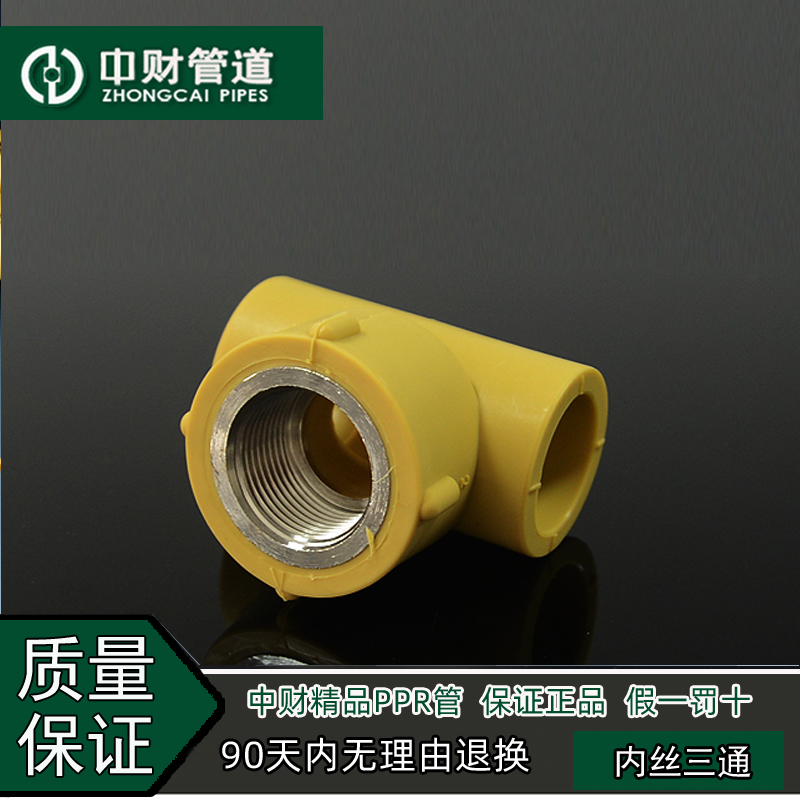 Zhongcai pipe PPR hot and cold water pipe fittings 20 25 32 4 minutes 6 minutes 1 inch inner wire tee Inner tooth tee
