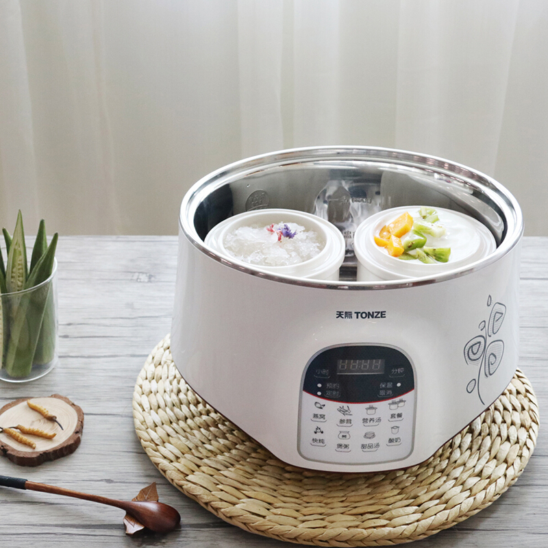 Tonze skyline DGD22-22EWG stainless steel water-stop saucepan white porcelain electric saucepan cooking porridge pan with a pan of three guts