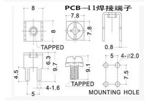 PCB-11C welding terminal M4M3 terminal PCB board terminal copper fixed seat terminal pin bench