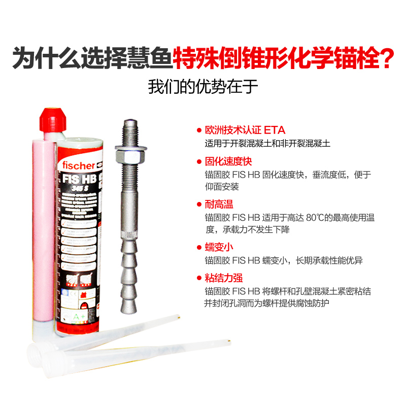 Hui fish stereotyped chemical anchor bolt FHB M10M12M16M20M24 inverted cone anti-cracking concrete
