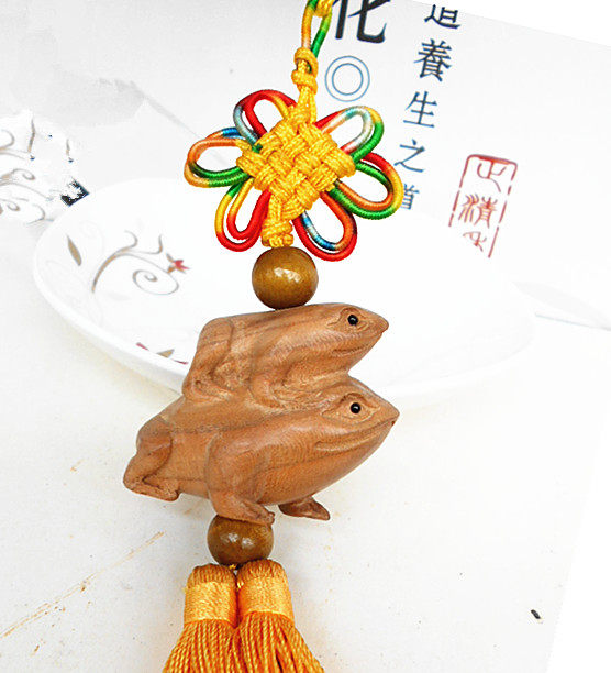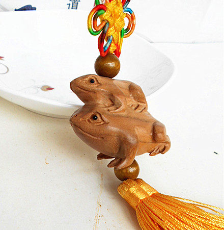 Natural peach wood mother and child frog golden toad car trailer decoration home living room wood carving pendant
